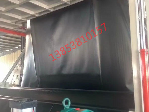 蓄水池防渗膜经压延、热熔涂敷而成,加工时聚合物塑料膜熔融或部分熔融软化,膜体呈黏流态,此刻引进的基布在复合辊的压力效果下发生紧缩变形,并将压力传递至基布、膜界面和膜体,基布中与膜体外表接触的纱线外表被挤入或部分挤入膜体,软化的塑料膜对挤入的纱线外表进行浸润分散和包覆,经冷却后,基布与塑料膜就结组成为了复合蓄水池防渗膜。